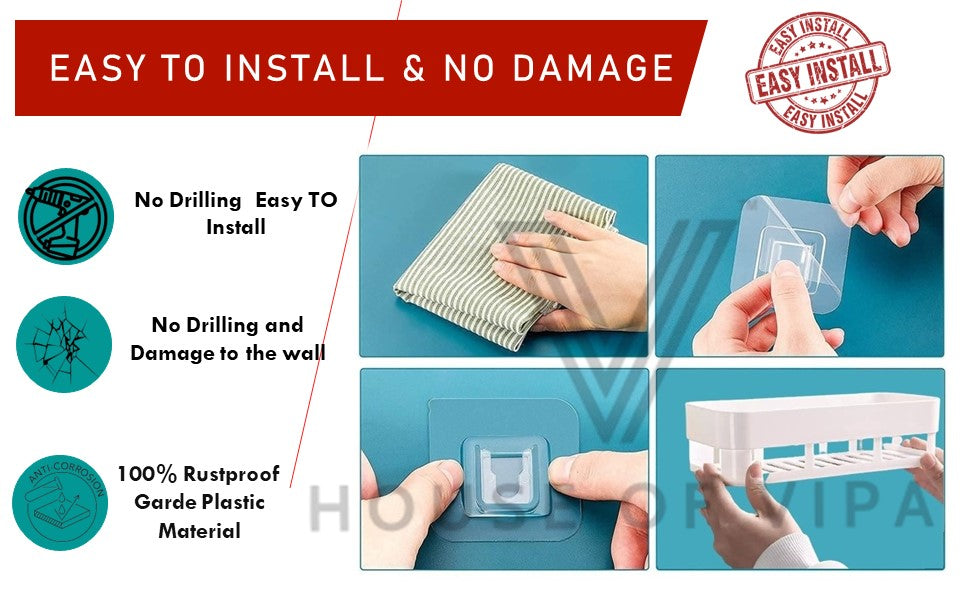 - Versatile and Functional: Our adhesive shelf serves as a bathroom holder for wall, a bathroom organiser stand, and a towel holder. It's a must-have bathroom essential for home organization. It's also suitable as a kitchen wall shelf.